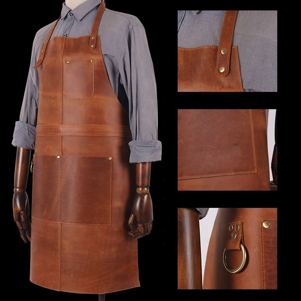 ผ้ากันเปื้อนหนังแท้สำหรับช่างเชื่อมแบบสั่งทำพิเศษ ลดราคา ผ้ากันเปื้อนเชื่อมทนไฟ ผ้ากันเปื้อนทำงานแบบมีกระเป๋าหลายช่อง ผ้ากันเปื้อนหนังวัวแท้สำหรับช่างเชื่อม