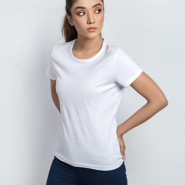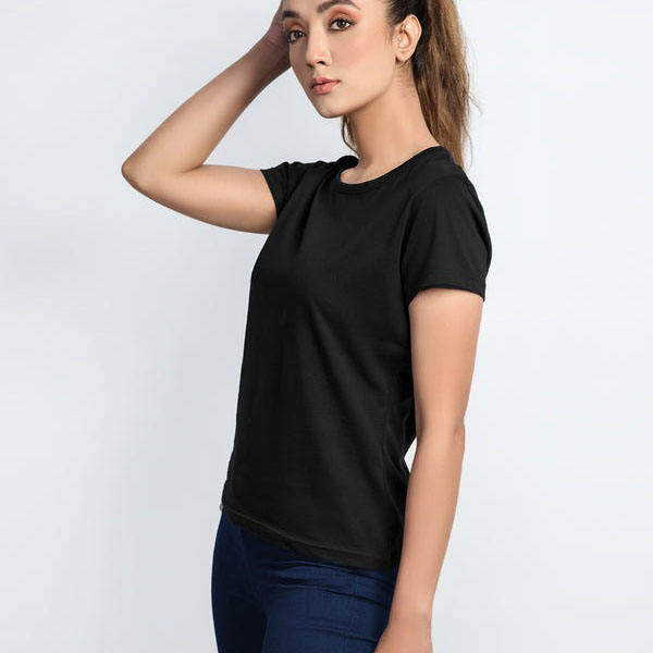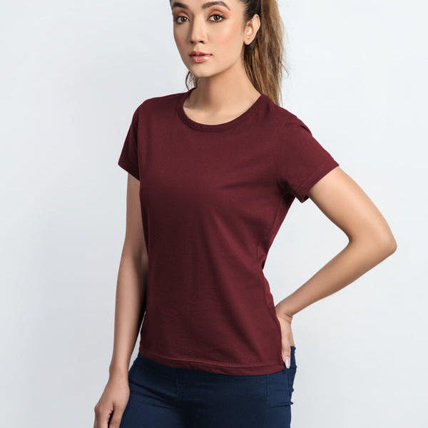 เสื้อยืดคอกลมแขนสั้นเข้ารูปสำหรับผู้หญิงลายสีพื้นแฟชั่นฤดูร้อนออกแบบโลโก้ได้ตามต้องการ