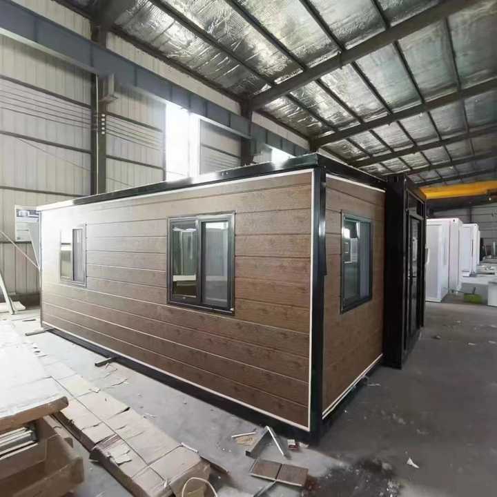 บ้านคอนเทนเนอร์แบบขยายได้สำหรับโรงแรมสำนักงานแผง20FT แซนวิช40ft 30ft หลังคาพายุเฮอริเคนแบบปรับแต่งได้