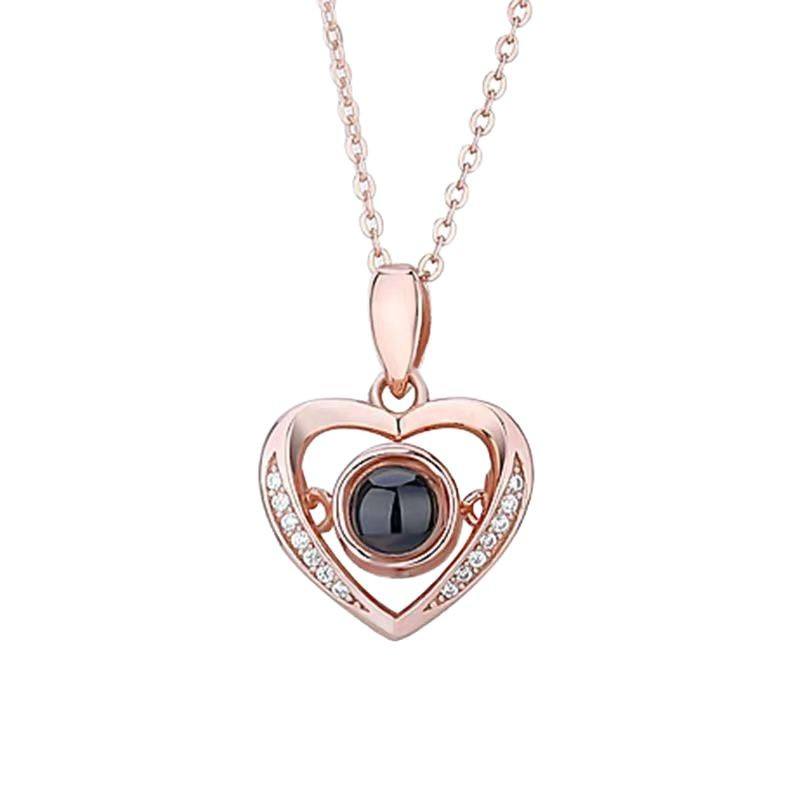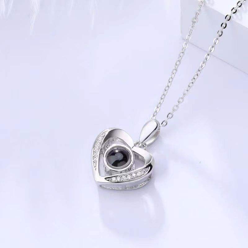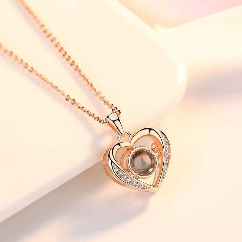 สร้อยคอจี้รูปภาพปรับแต่งได้ พร้อมฉายภาพ "ฉันรักคุณ" 100 ภาษา วัสดุโลหะผสมสังกะสี ชุบเงิน/ทอง ประดับเพชรซิร์คอน ลดราคาพิเศษ