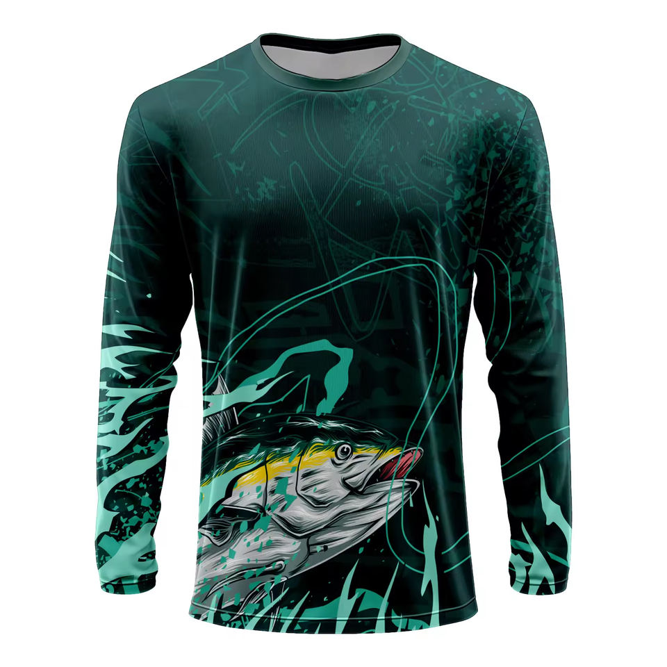 เสื้อตกปลาแขนยาวพิมพ์ลายตามสั่ง ลดราคาพิเศษ ป้องกันแสงแดด SPF 50 รับผลิตแบรนด์ส่วนตัว มีไซส์พลัสไซส์ให้เลือก
