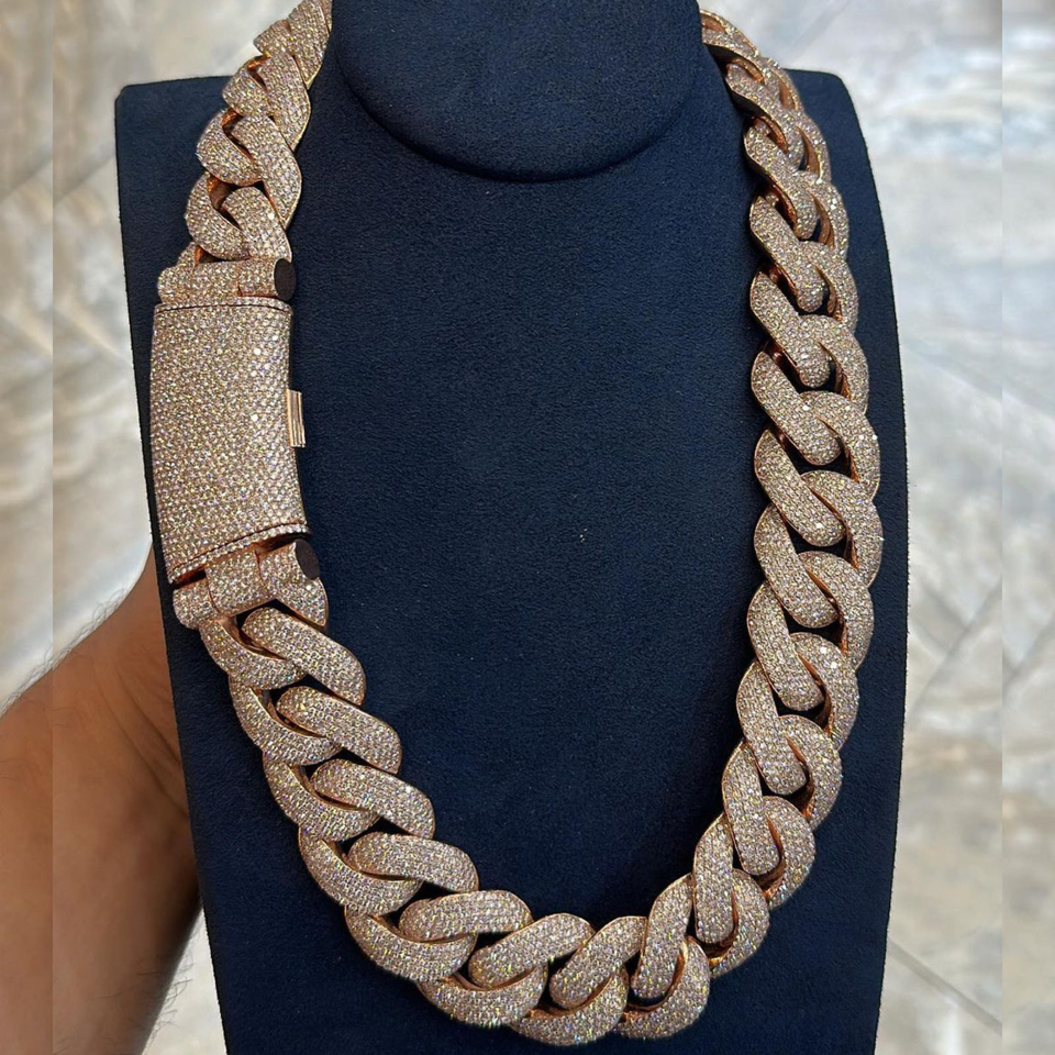 ขายดี VVS Moissanite Micro Pave Hip สร้อยคอ Miami cuban Link 10K สีทอง22mm Heart Sterling Silver unisex