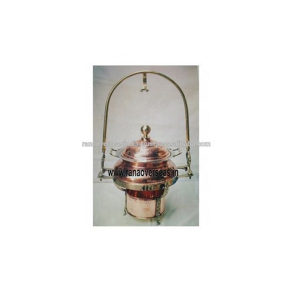 จานอุ่นอาหารพร้อมฝาปิดสำหรับจัดเลี้ยงอาหารบุฟเฟ่ต์ทำจากทองแดงดีไซน์ค้อนตกแต่ง