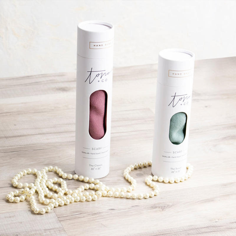 กล่องกระดาษทรงกระบอกสำหรับบรรจุเสื้อผ้า ผ้าพันคอไหม พร้อมหน้าต่าง ดีไซน์ขายดี สำหรับบรรจุเสื้อผ้ามือสอง