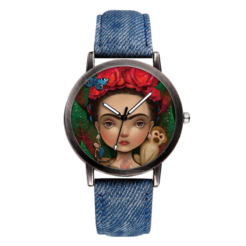 นาฬิกาข้อมือแนวสปอร์ตลำลองสำหรับผู้ชายและผู้หญิงสายหนังยีนส์สำหรับใส่ได้ทั้งชายและหญิงแฟชั่นฤดูร้อน