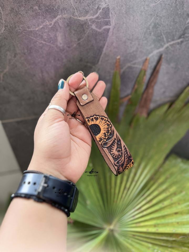 ลดกระหน่ำพวงกุญแจหนังแท้พวงกุญแจหนังแท้พวงกุญแจพิมพ์ลายดอกไม้