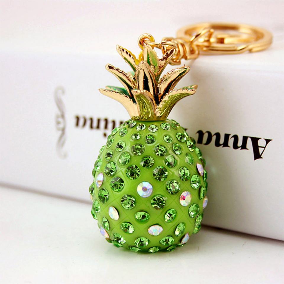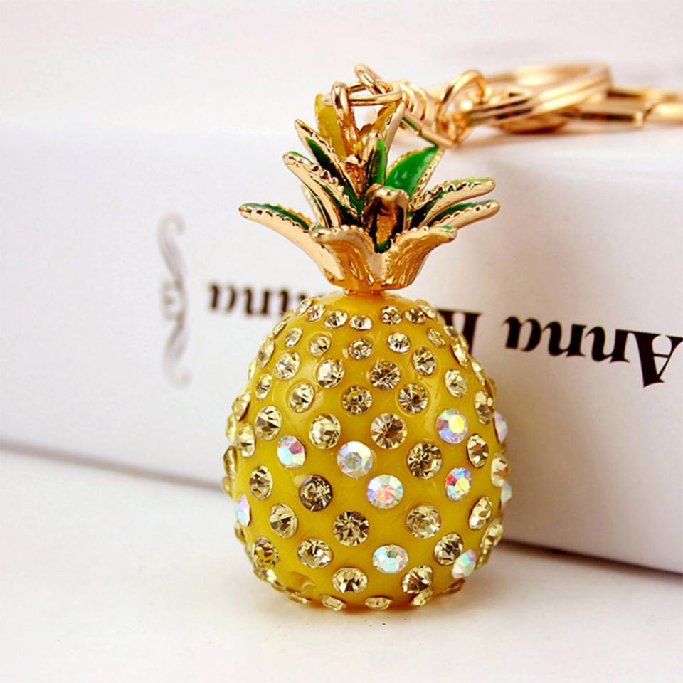 กระเป๋าแฟชั่นรูปสับปะรดประดับเพชรหลากสีสัน ของตกแต่งพวงกุญแจสำหรับผู้หญิง โปรโมชั่นลดราคา