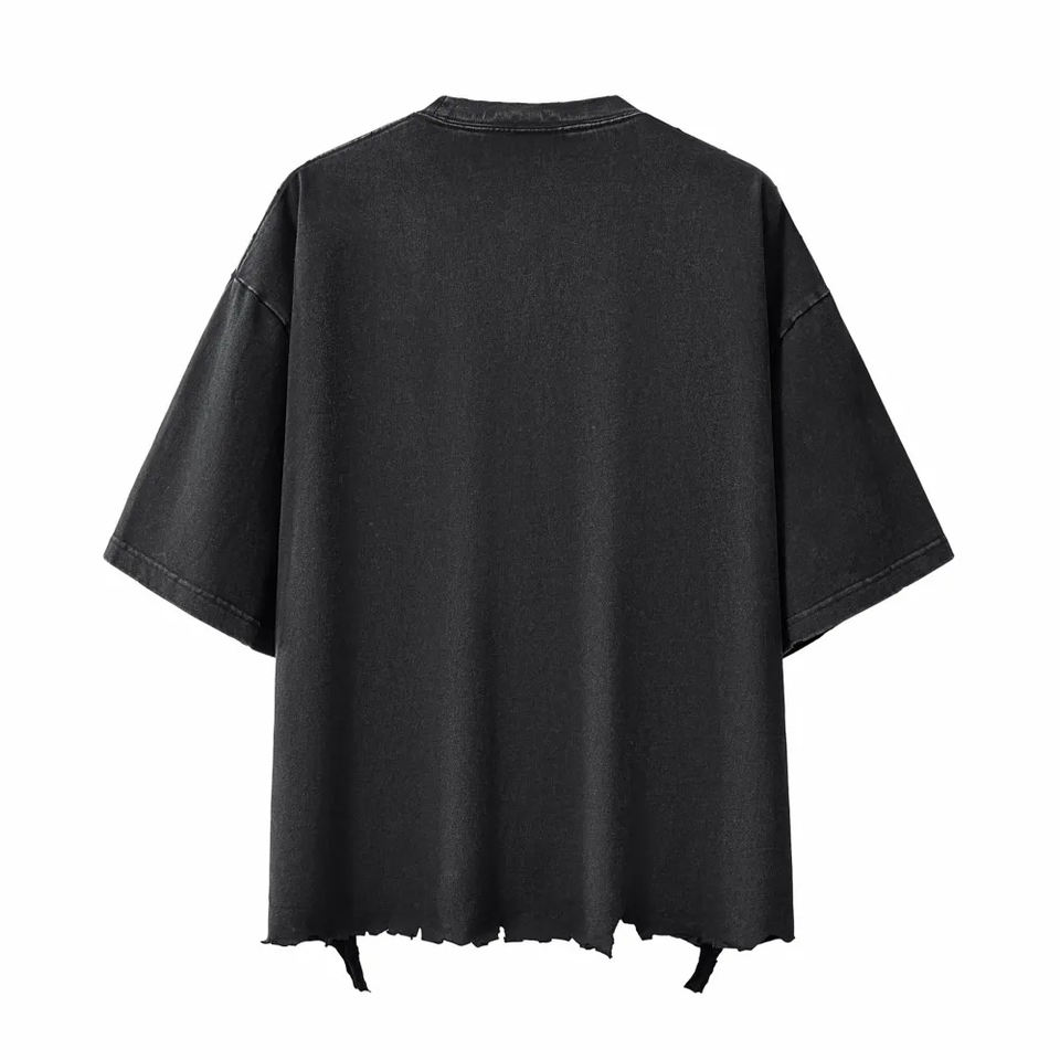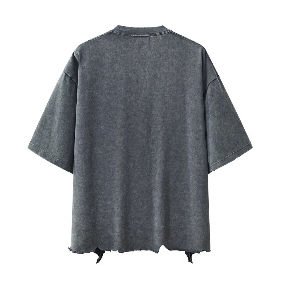 เสื้อยืดคอตตอนโอเวอร์ไซส์ 320gsm ทรงโอเว่นชอว์เดอร์ สไตล์สตรีทแวร์ ล้างสีแบบแอซิดวอช คอหนา พิมพ์ลาย DTG สำหรับผู้ชายและผู้หญิง ลดราคาพิเศษ