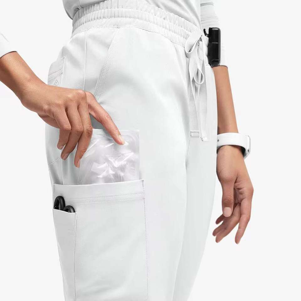 ชุดยูนิฟอร์มแพทย์พยาบาลลดราคา ชุดสครับคลินิก เสื้อแขนสั้น กางเกงขายาว ผ้าสแปนเด็กซ์/โพลีเอสเตอร์ถัก สำหรับผู้หญิง