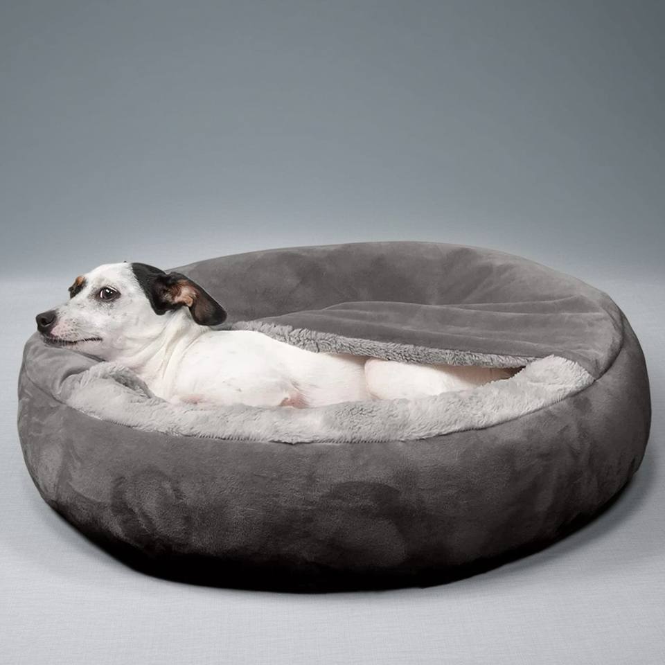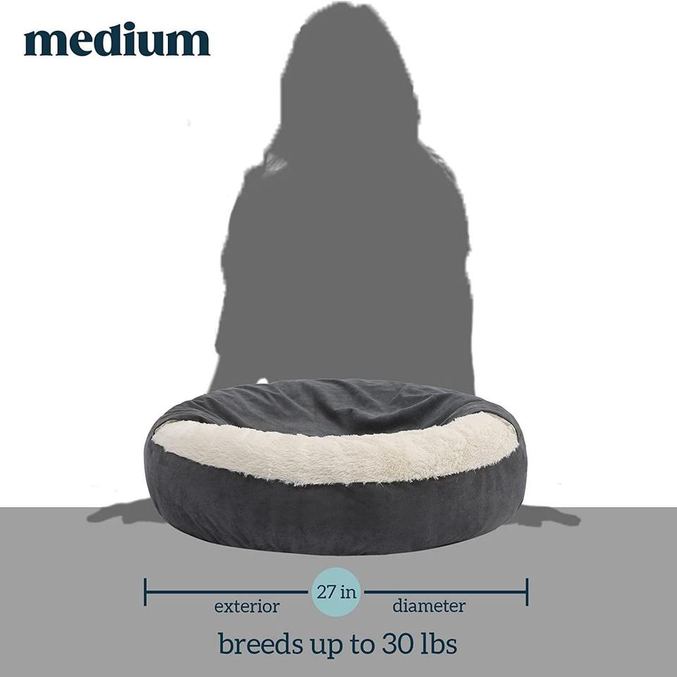 ที่นอนโดนัทสำหรับสัตว์เลี้ยงในบ้าน แมวและสุนัขพันธุ์เล็ก ผ้ากำมะหยี่นุ่มล้างทำความสะอาดได้ รูปทรงโดนัทมีฮู้ด สีเทาเข้ม ขนาดเล็ก ลดราคาพิเศษ