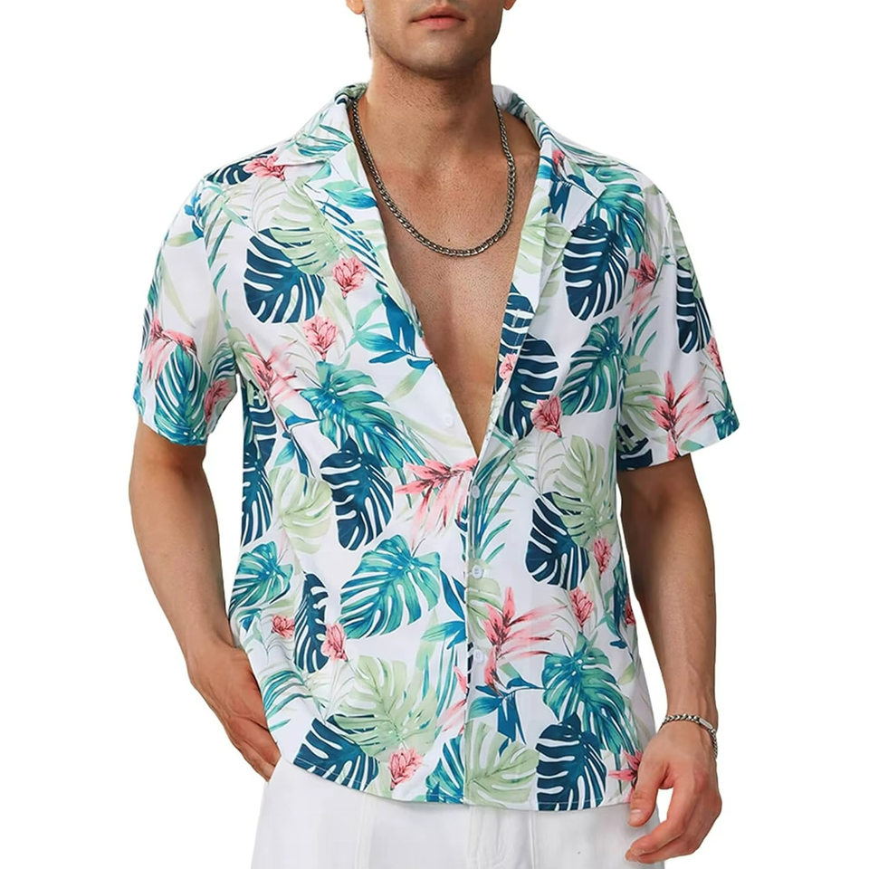 เสื้อเชิ้ตฮาวายชายแขนสั้นทรงดับเบิ้ลเบรสต์ ระบายอากาศได้ดี ลายพิมพ์แฟชั่น สำหรับใส่ไปชายหาด สไตล์ฤดูร้อน ลดราคาพิเศษ