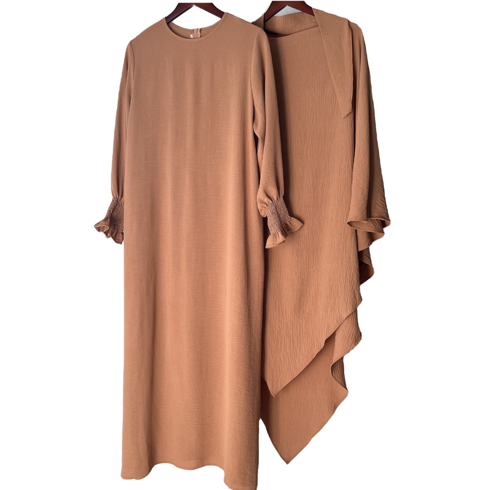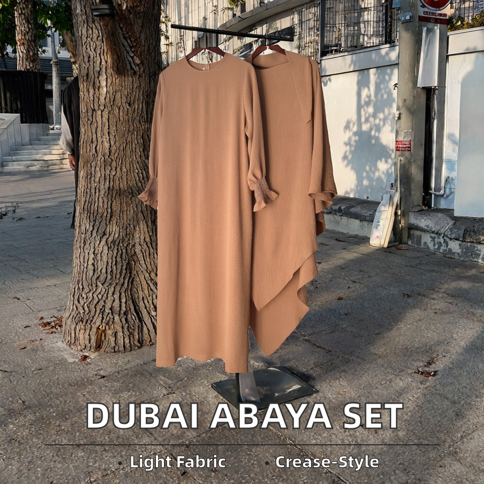 ชุดเซ็ตสองชิ้นแบบสบายๆ น้ำหนักเบา สีพื้น ผ้าโพลีเอสเตอร์ พร้อมฮิญาบ สำหรับสวมใส่ละหมาดในฤดูใบไม้ร่วงและสวมใส่ในชีวิตประจำวัน ลดราคาพิเศษ