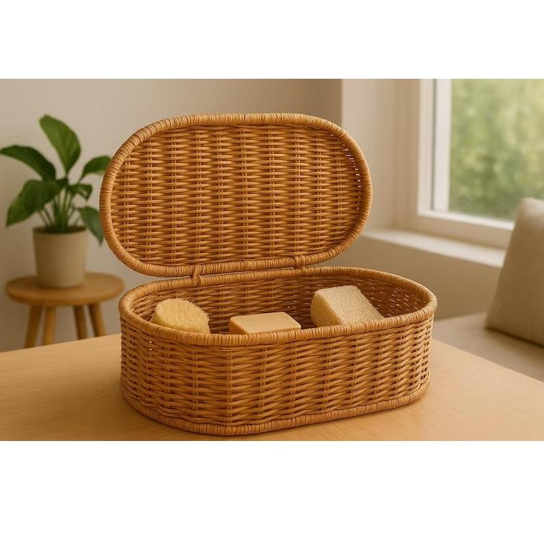ตะกร้าเก็บของหวายธรรมชาติทอมืออเนกประสงค์ทันสมัยเป็นมิตรกับสิ่งแวดล้อม ลดราคาพิเศษ สำหรับจัดระเบียบบ้าน ชั้นวางของในครัว