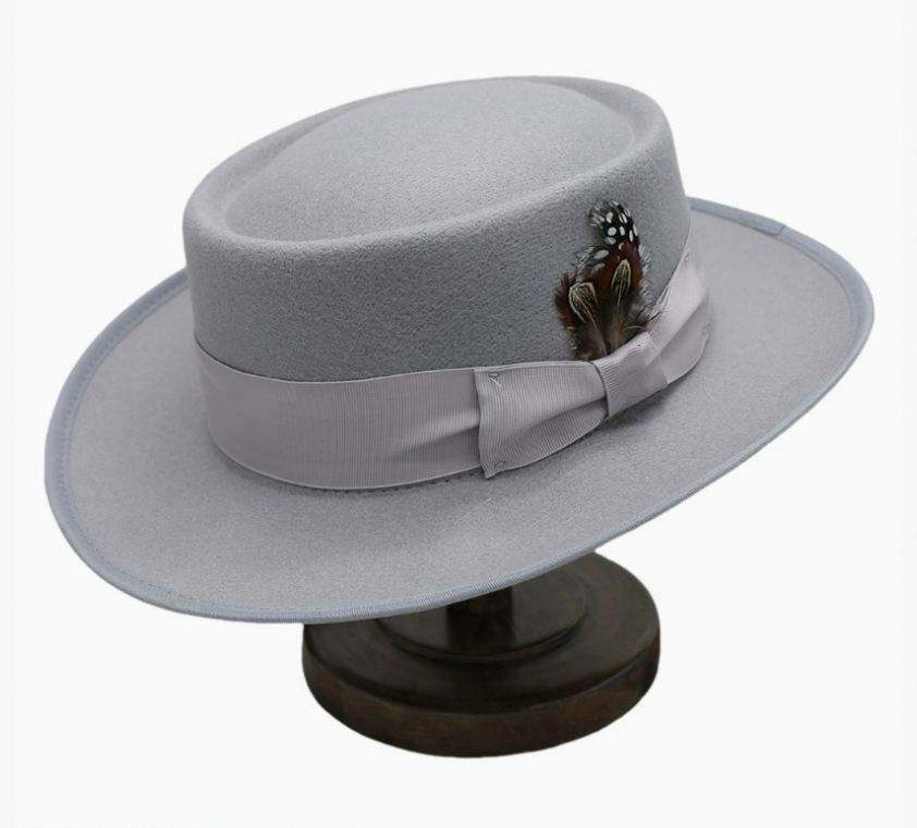 หมวกปอร์กไพพิมพ์ลายซิลค์สกรีนจากวัสดุยางรักษ์โลก ลดราคาพิเศษ แฟชั่นสไตล์อังกฤษ สำหรับผู้ชายและผู้หญิง หมวกแจ๊สเฟโดร่าประดับขนนก