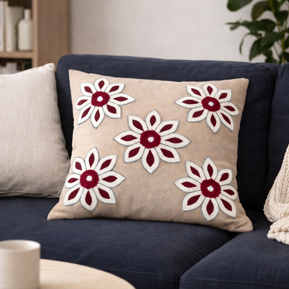 ปลอกหมอนอิงปักลายดอกไม้ตกแต่ง ผ้าฝ้ายพรีเมียม สำหรับโซฟา ห้องนั่งเล่น ของตกแต่งบ้าน ขายส่ง