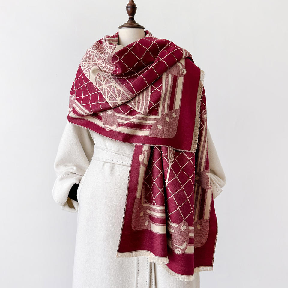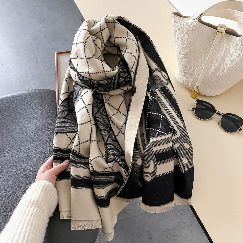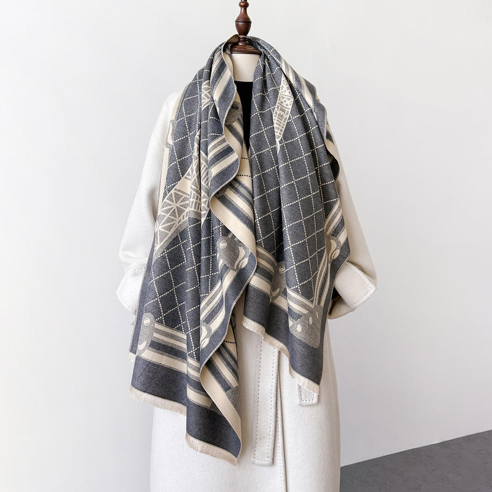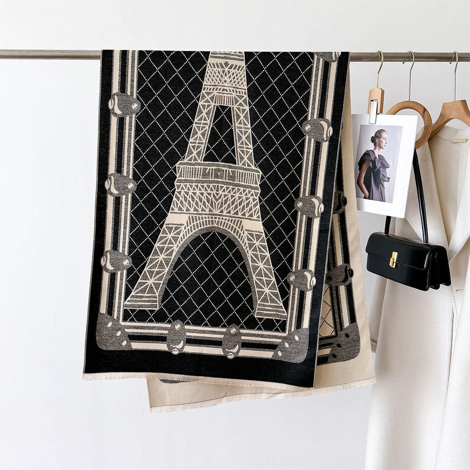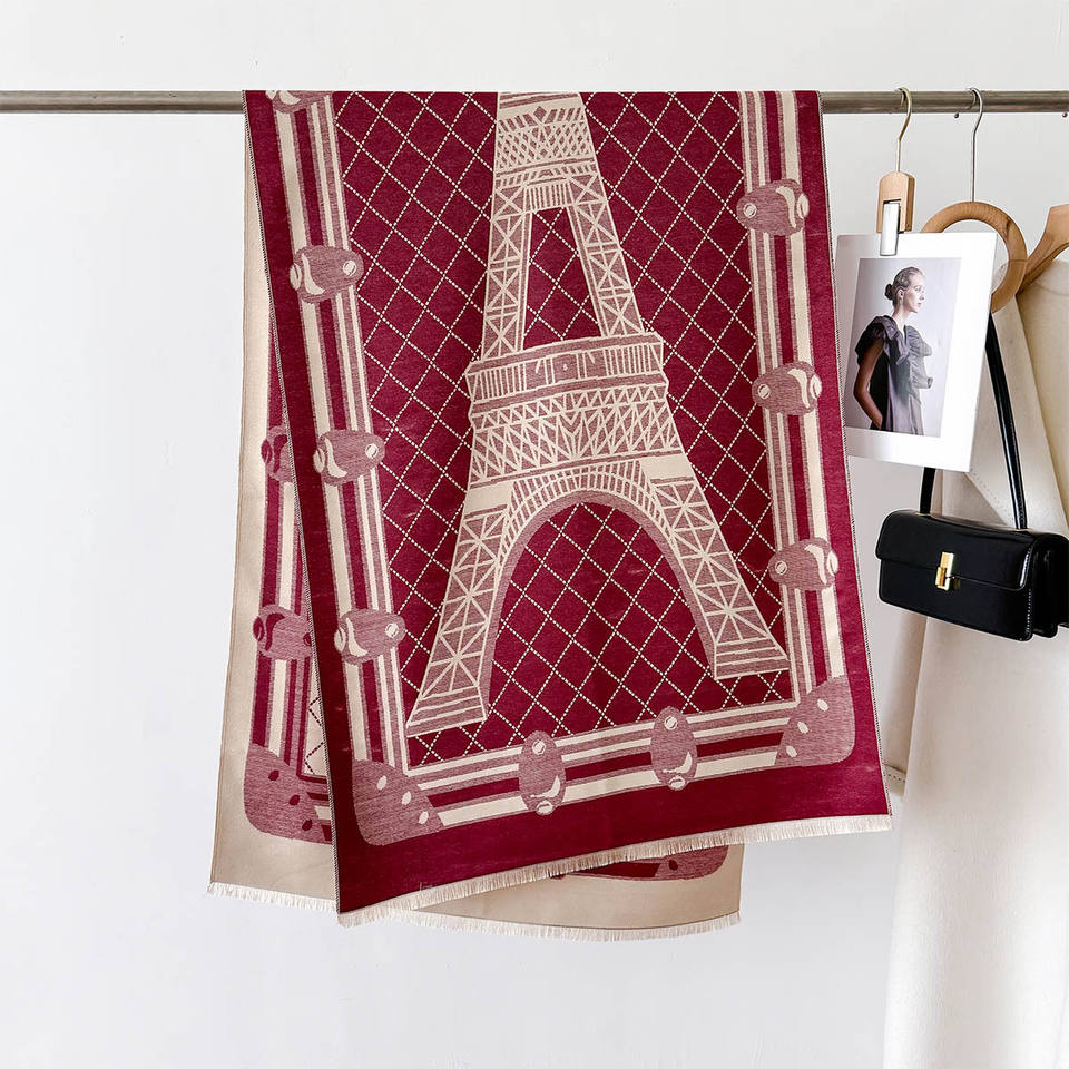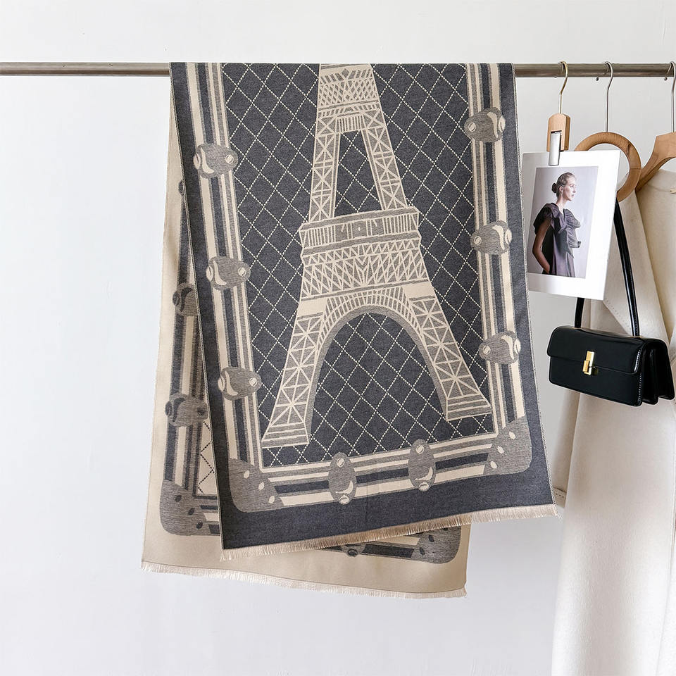 Hot Sale Elegant Pashmina Eiffel Tower Shawls Stoles Luxury Design Long Scarf Autumn Winter Warm Thick Cashmere Scarf for Women