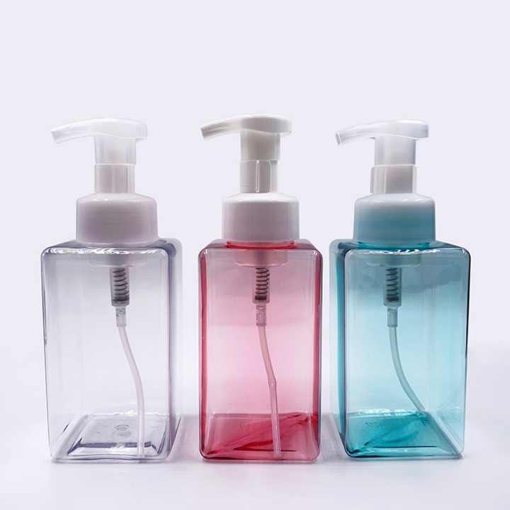 ขวดปั๊มโฟมเปล่าสำหรับสบู่เหลว พลาสติก PETG 450 มล. ขวดโฟมทรงเหลี่ยม สีเหลืองอำพัน ขาว ชมพู เขียว ใส ฟ้า ลดราคา