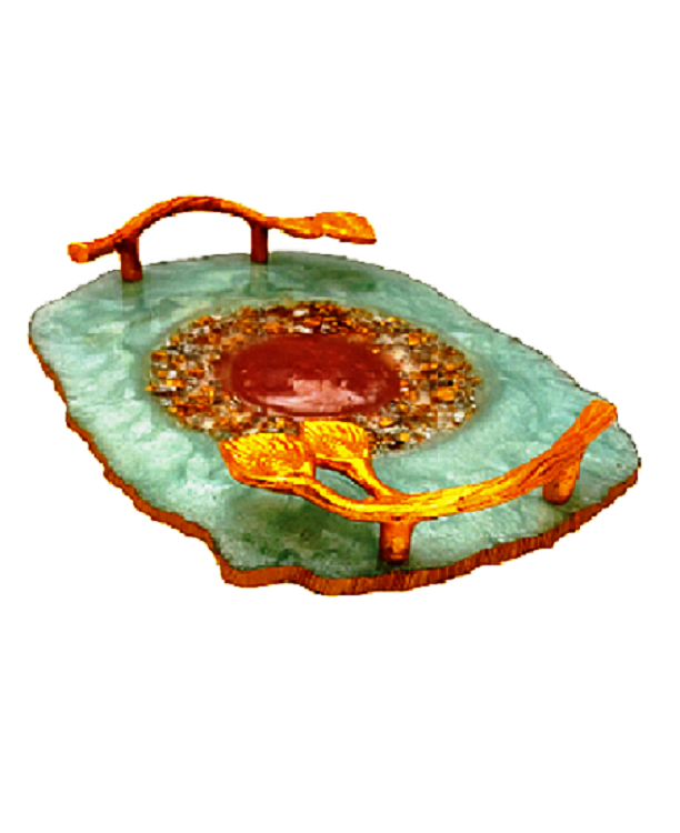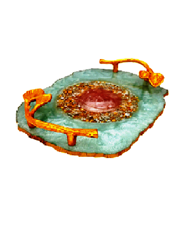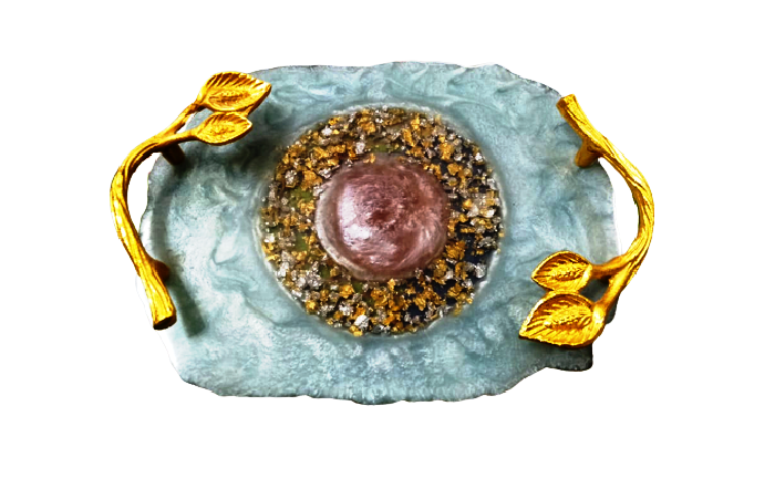 Kitchenwac ถาดเสิร์ฟเรซินอีพ็อกซี่ด้ามจับโลหะทองคำเปลวสำหรับโรงแรมและร้านอาหาร