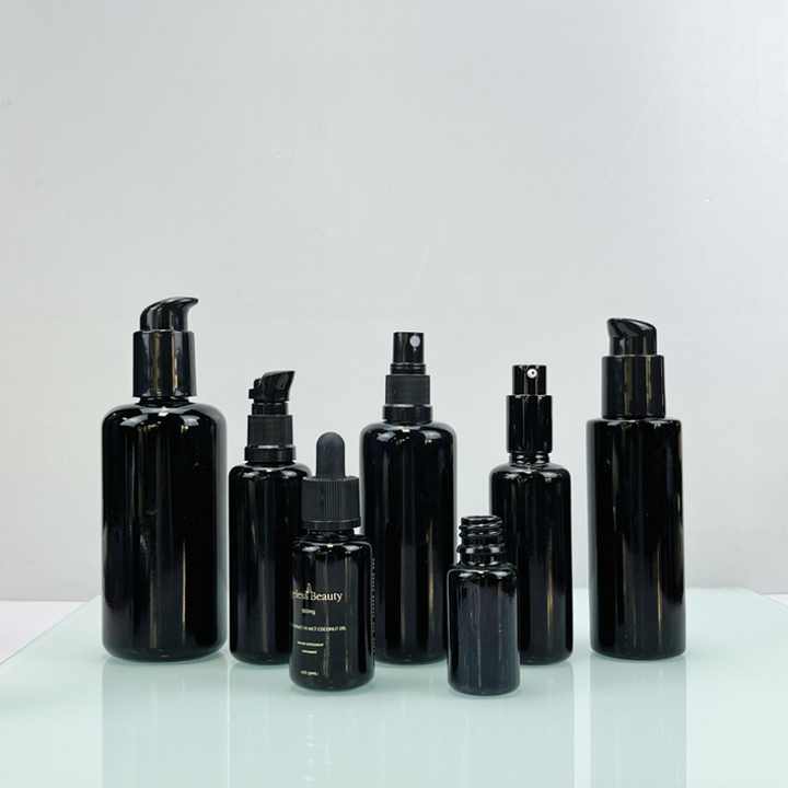เซรั่มน้ำมันหอมระเหยขายดี ผลิตภัณฑ์บำรุงผิวสูตรพิเศษ ขวดแก้วสีม่วงเข้มป้องกันรังสียูวี ขนาด 30 มล. พร้อมหัวหยดสีทอง พิมพ์ลายสกรีนได้