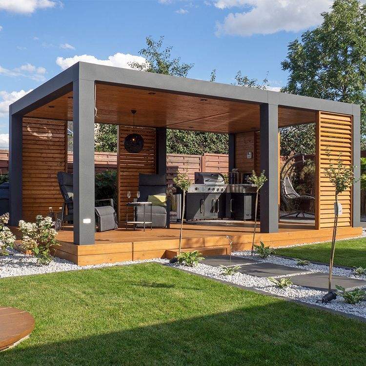 ศาลาสวนสไตล์ยุโรปกระท่อมแสงแดดส่องถึงหน้าบ้านหลังคาบานเกล็ดอลูมิเนียมซุ้มซุ้มไม้เลื้อย
