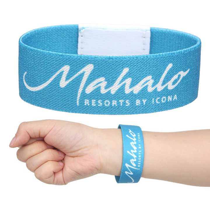 สายรัดข้อมือ NFC RFID แบบไม่ใส่เงินสดยืดหยุ่นพิมพ์ลายกว้าง1.5ซม. สายกว้าง1มม. โพลีเอสเตอร์สไตล์ลำลองใช้ในงานเทศกาล