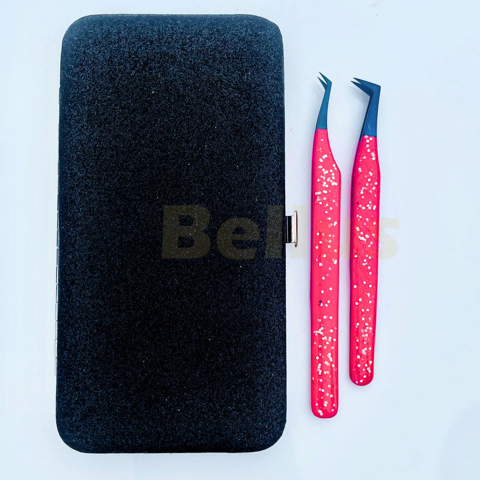 แหนบต่อขนตาปลอมทำจากสแตนเลสมีความแม่นยำสูงพิมพ์โลโก้ได้ตามต้องการและปลายไฟเบอร์ผสมฉลากส่วนตัว