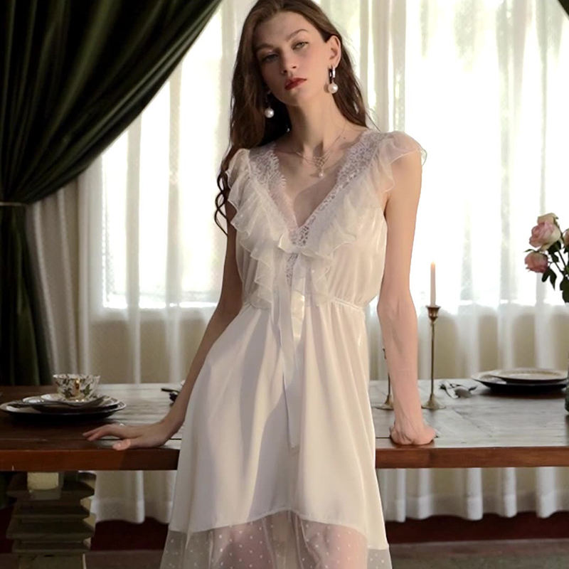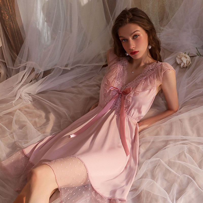 ชุดนอนซีทรูตาข่ายเซ็กซี่แบบยาวถึงเข่า ผ้าซาตินเนื้อนุ่ม ระบายอากาศได้ดี แห้งเร็ว แต่งขอบลูกไม้ลายขนตา ลดราคาสุดฮอต
