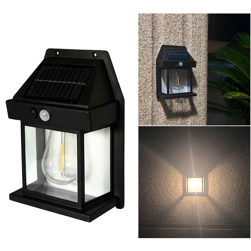 โคมไฟติดผนังพลังงานแสงอาทิตย์ทรงสี่เหลี่ยมกันน้ำสำหรับสวนโคมไฟทังสเตน