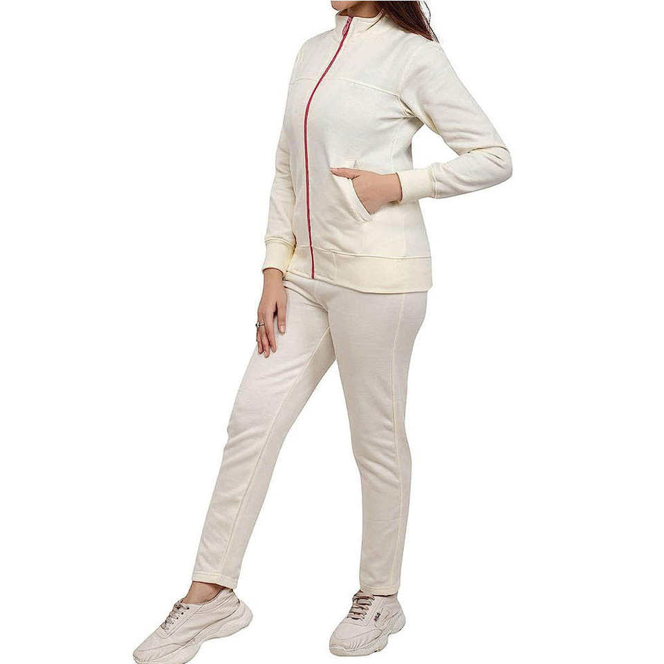 ชุดวอร์มของผู้หญิงผ้าฝ้ายคุณภาพระดับพรีเมียมลายสีพื้นสไตล์ลำลองสำหรับฤดูหนาวผลิตจากโรงงาน