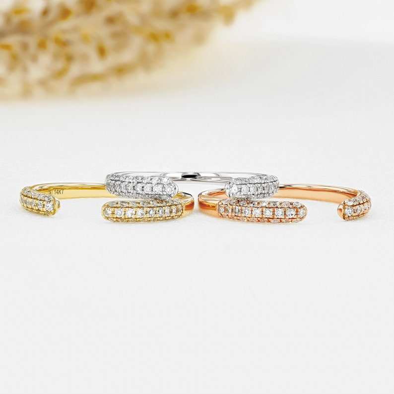 แหวนเพชรธรรมชาติ14K 18K แหวนเพชรแบบเปิดโล่งวงแหวนแต่งงานที่ละเอียดอ่อน