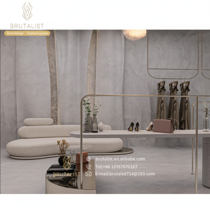 ชั้นวางเสื้อผ้าแฟชั่นลดราคา ชั้นวางเสื้อผ้าผู้หญิง ดีไซน์ตกแต่งภายในร้านค้า ไอเดียการออกแบบร้านบูติกไม้