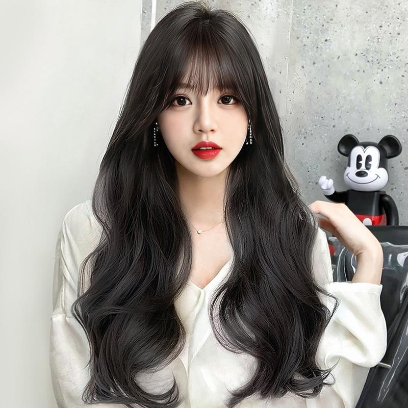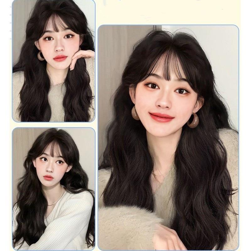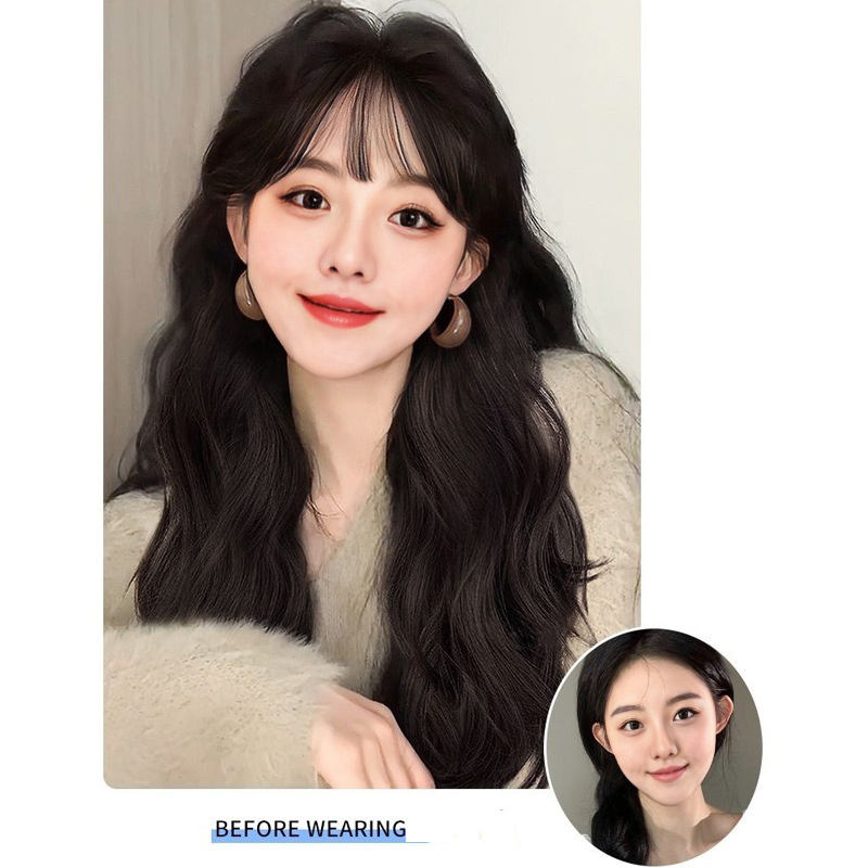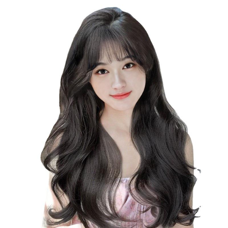 Hot Sale Female Big Wavy Long Hair Net Red Long Curly Hair Air Bangs Chemical Fiber Full Headgear