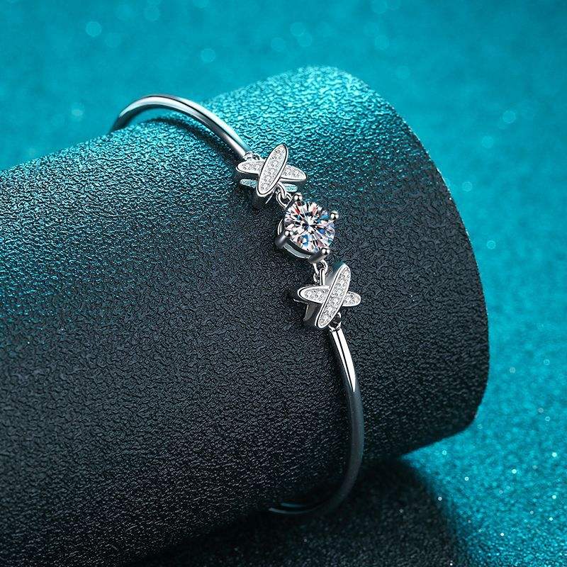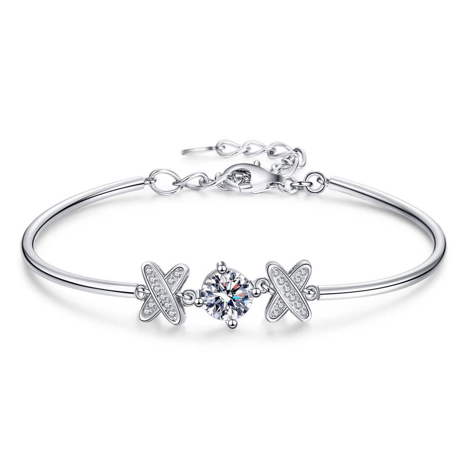 เครื่องประดับลดราคาสุดฮอต สร้อยข้อมือเทนนิสโมอิสซาไนต์ 1 กะรัต เงินแท้ S925 ชุบโรเดียม ดีไซน์ทันสมัยสำหรับทุกเพศ