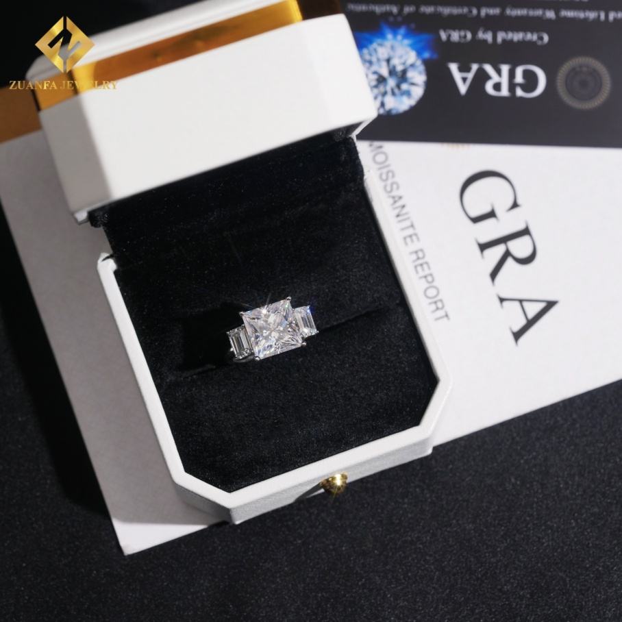 เครื่องประดับเพชรชั้นดีแหวนหมั้นเพชรแบบเจ้าหญิง925สเตอร์ลิงกราแหวนเพชรโมอิสซาไนต์สำหรับผู้หญิง