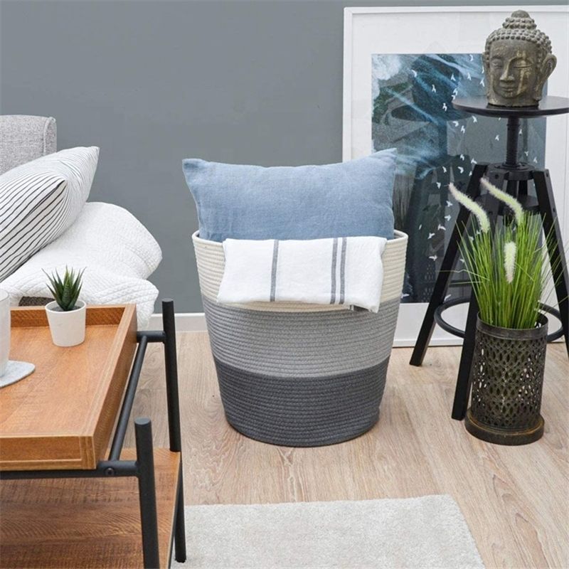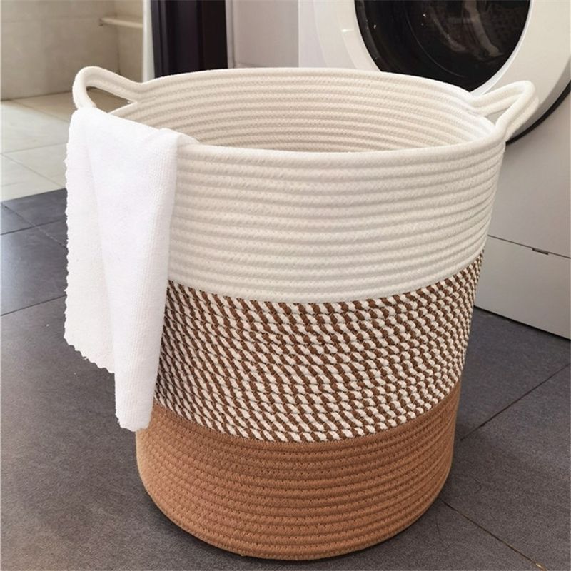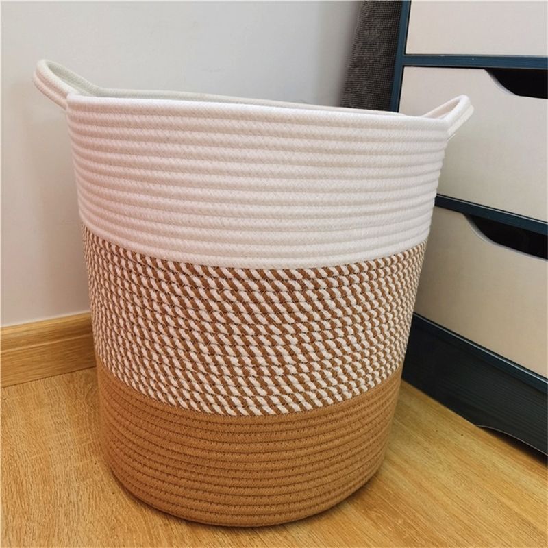 ตะกร้าผ้าทอคอตตอนพับเก็บได้ตะกร้าซักผ้าแบบสาน