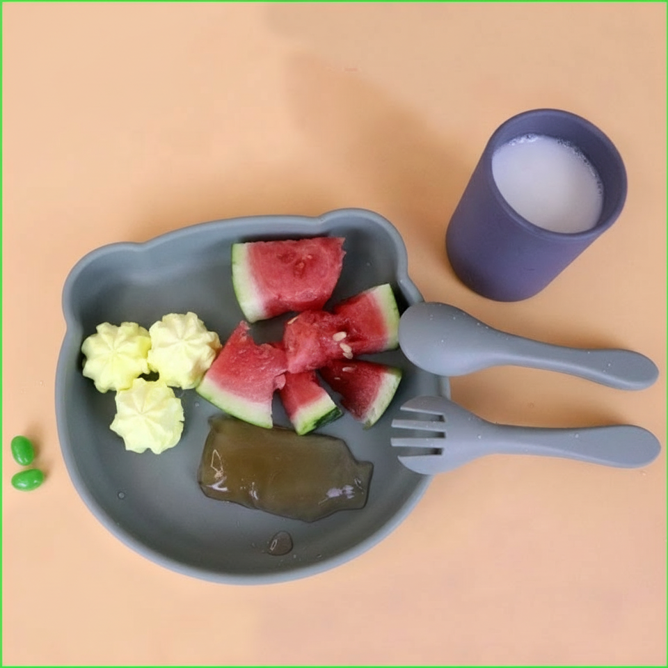 ชามซิลิโคนเกรดอาหารสำหรับเด็ก จานอาหารเด็ก ชุดอาหารเด็ก จานอาหารเด็กแบบมีจุกดูด