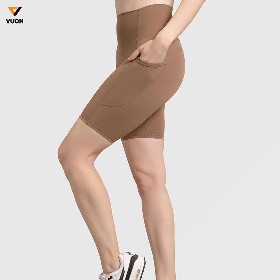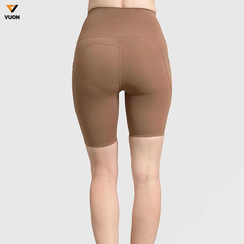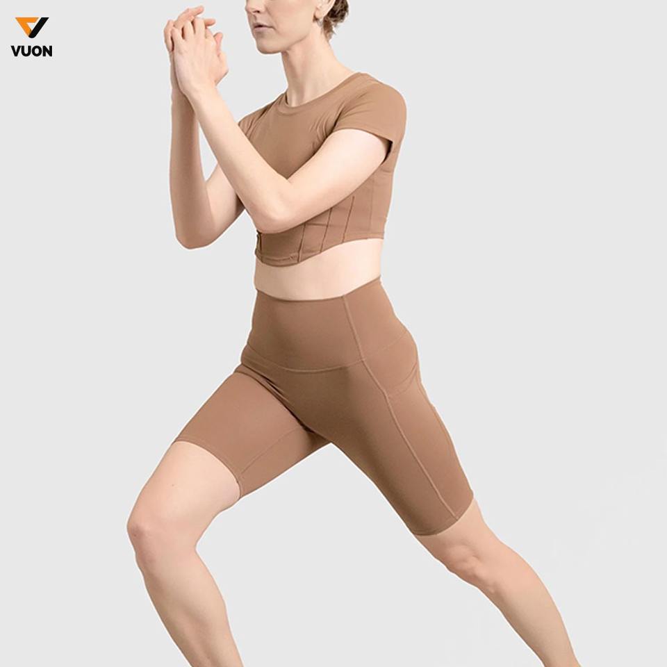 กางเกงขาสั้นรัดรูปเอวสูงสำหรับผู้หญิงกางเกงกีฬาขาสั้นไร้รอยต่อสำหรับออกกำลังกายวิ่งออกกำลังกายแบบสี่ทาง