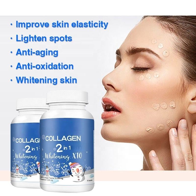 อาหารเสริมคอลลาเจนแช่แข็ง 2-in-1 ช่วยให้ผิวขาว 60 แคปซูล สูตรคอลลาเจนเปปไทด์จากทะเล ลดราคาพิเศษ