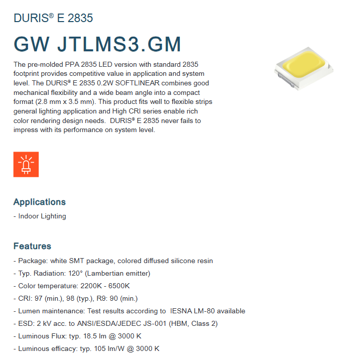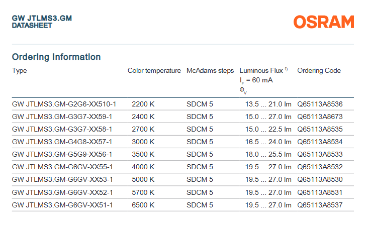 อุณหภูมิสี (CCT):2700K, 3000K, 3500K, 4000K, 5000K, 5700K, 6500K, 2200K, 1800K, 2400K