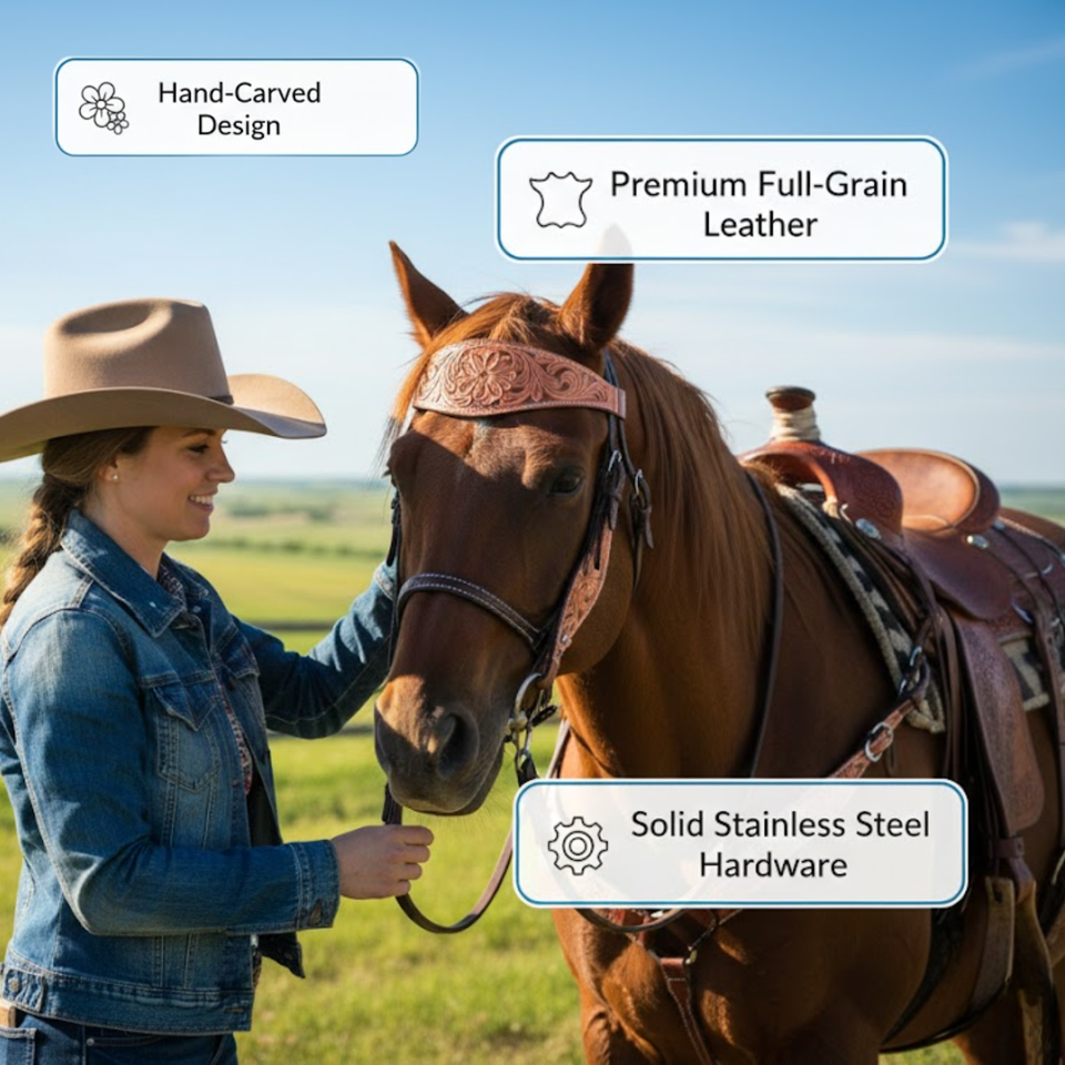 บังเหียนม้าหนังแท้ลดราคา | คุณภาพสูง ระดับมืออาชีพ แข็งแรง ทนทาน | ชุดสายรัดจมูกและสายบังเหียนแบบแฟลช | 2026