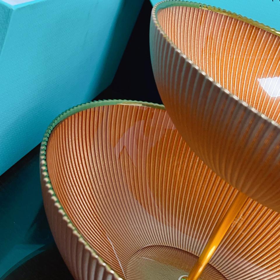 จานผลไม้แก้วเคลือบสีส้มสองชั้น แยกช่องใส่ ปลอดภัยสำหรับเครื่องล้างจาน ปลอดสารพิษ สไตล์ยุโรป สวยงาม ใช้งานได้จริง ลดราคาพิเศษ