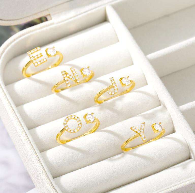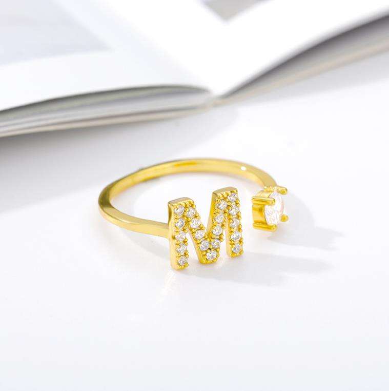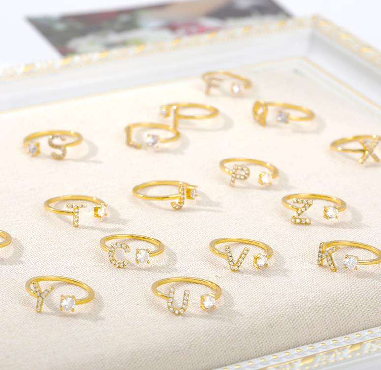 ขายร้อนชุบทอง Zircone 26ตัวอักษรแหวน A ถึง Z ตัวอักษรเริ่มต้นแหวนปรับ