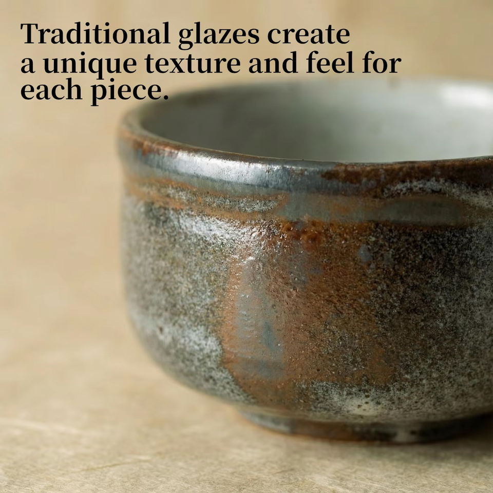 ถ้วยชาเซรามิกมิโนะแบบดั้งเดิมสองสีเทาขาว งานแฮนด์เมด ลดราคาพิเศษ