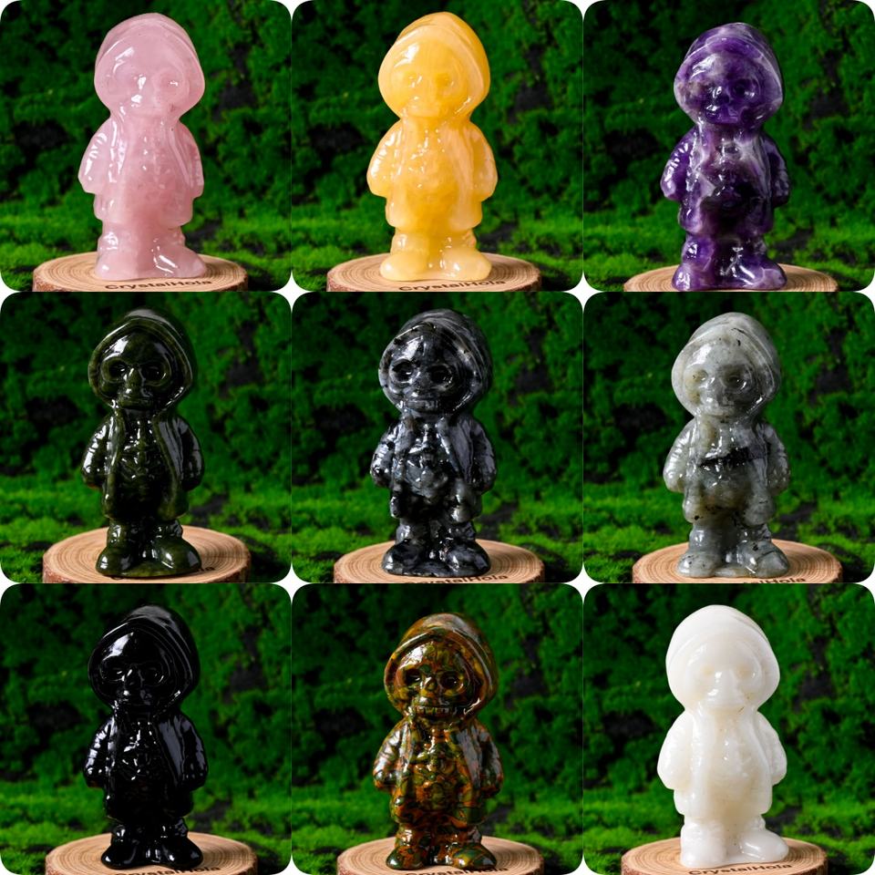 ของขวัญฮาโลวีนลดราคาพิเศษ แกะสลักคริสตัลรูปแจ็คจากหินออบซิเดียนสีดำ งานฝีมือบำบัดทางจิตวิญญาณเพื่อการตกแต่ง