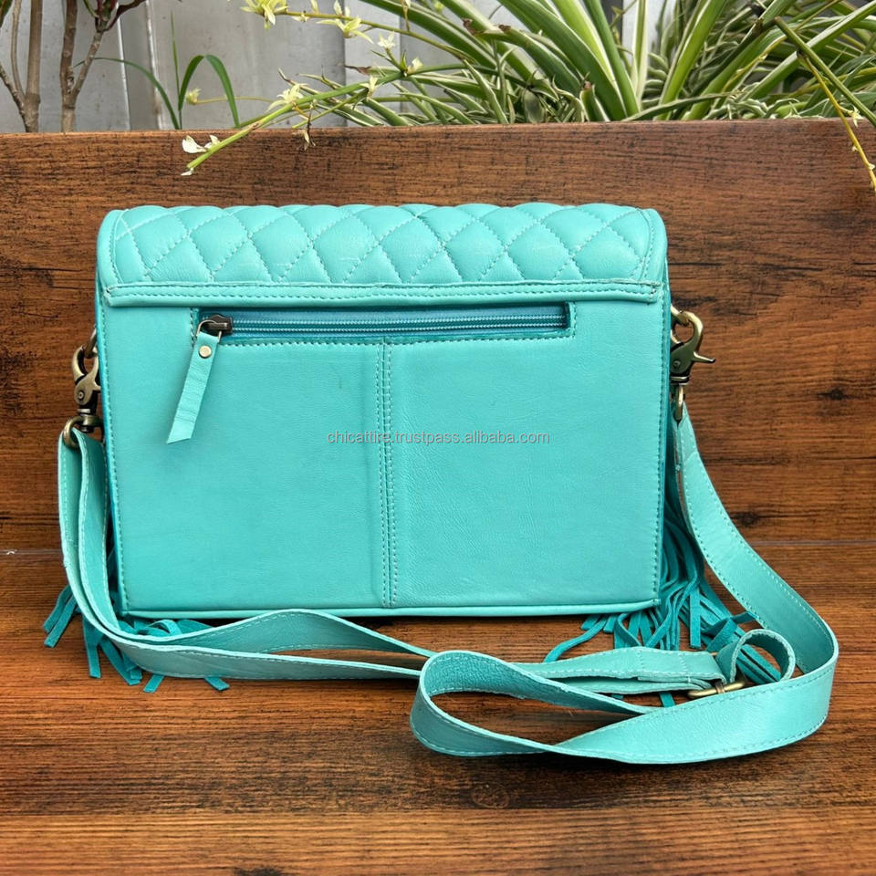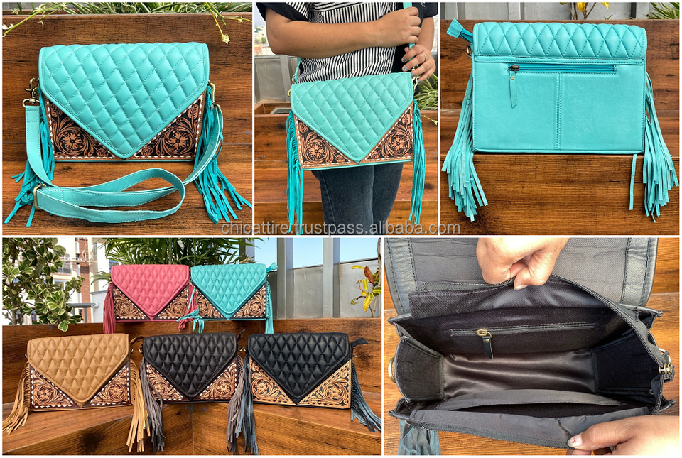 Product name:Hand Tooled Quilted Leather Envelope Fringe Purse