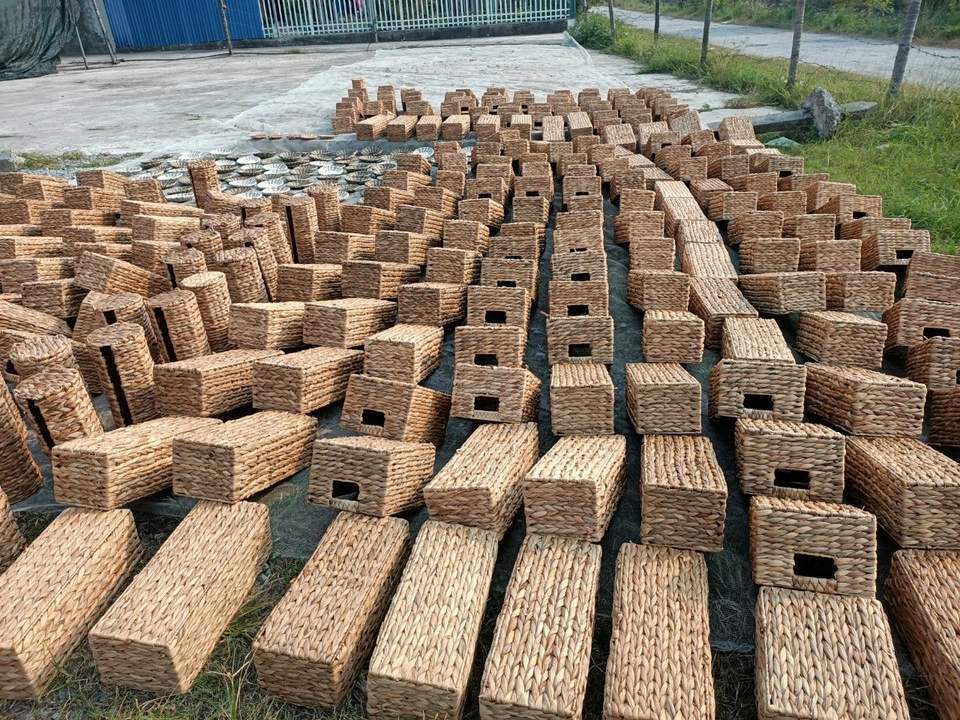 ตะกร้าใส่ของผักตบชวาสานด้วยมือตะกร้าใส่อาหารงานซักรีดของขวัญแต่งงานงานครัวทำจากเวียดนาม