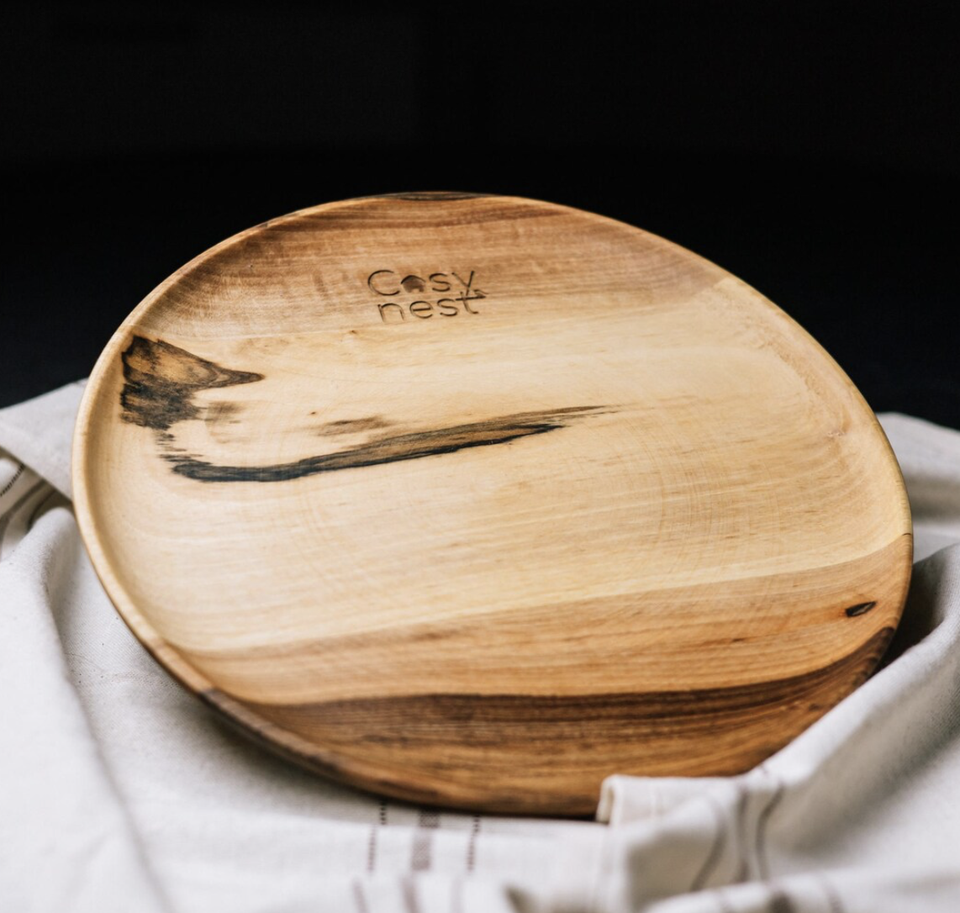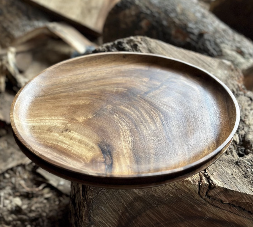จานกลมสำหรับเค้กขนมปังผลไม้งานหัตถกรรมถาดไม้อะคาเซียทำโดยหัตถกรรม tayyab