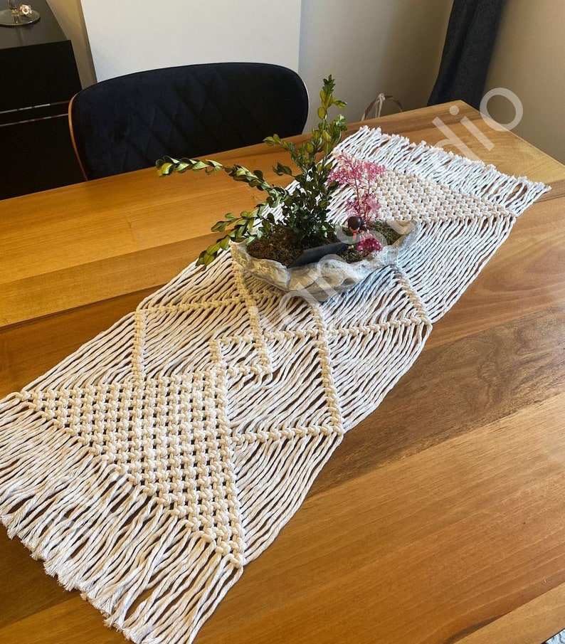แผ่นรองบนโต๊ะผ้าคอตตอนถักด้วยมือสีขาวสไตล์โบฮีเมียน