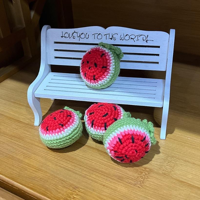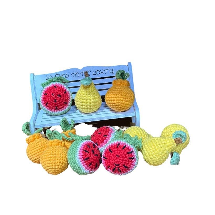 ชุดพวงกุญแจคาราบิเนอร์ถักโครเชต์ทำมือประกอบด้วยมะนาวลูกแพร์ส้มแตงโมสำหรับกระเป๋าและของตกแต่ง