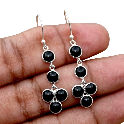 ลดกระหน่ำต่างหูห้อยทำด้วยมือต่างหูเงินสีดำอัญมณีโอนิกซ์925แข็งเงินสเตอร์ลิงต่างหูกับเครื่องประดับแสตมป์925